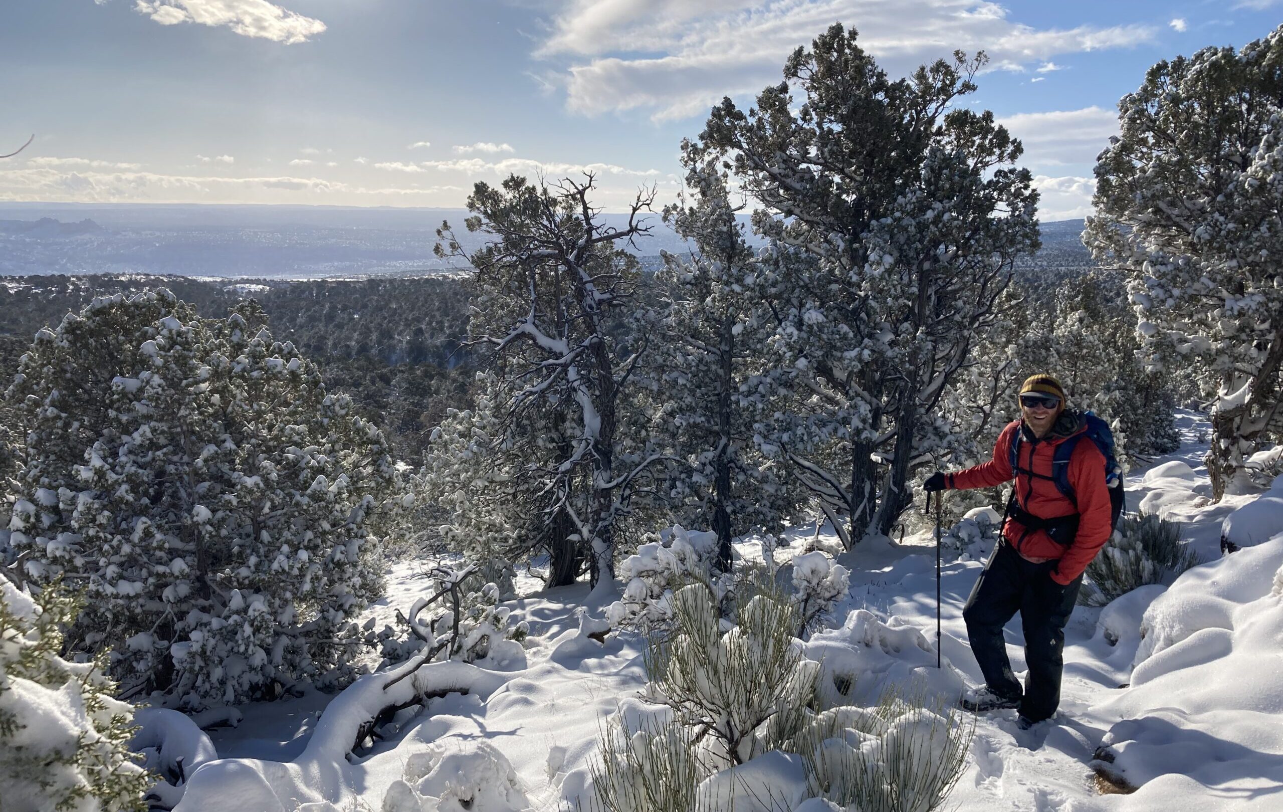 When we hit the Arizona Trail it was afternoon, and we headed up to the Kaibab Plateau. The night before we had checked the weather and knew there was a snow storm coming. It didn’t seem that it would last long. We made a plan to make camp early before the storm really started. We got our tent up and almost immediately the snow started falling and didn’t stop until morning. The trail was covered in 12 inches of snow, and it was even deeper in windblown sections. We walked 20 miles to Jacob Lake to get a spot at the Inn. It was forcasted to be just 5 degrees that night! When we made it to Jacob Lake, we took a rest day, thankful for a break from the freezing temperatures. The cold continued throughout that week until we finally to dropped in elevation into the Grand Canyon.